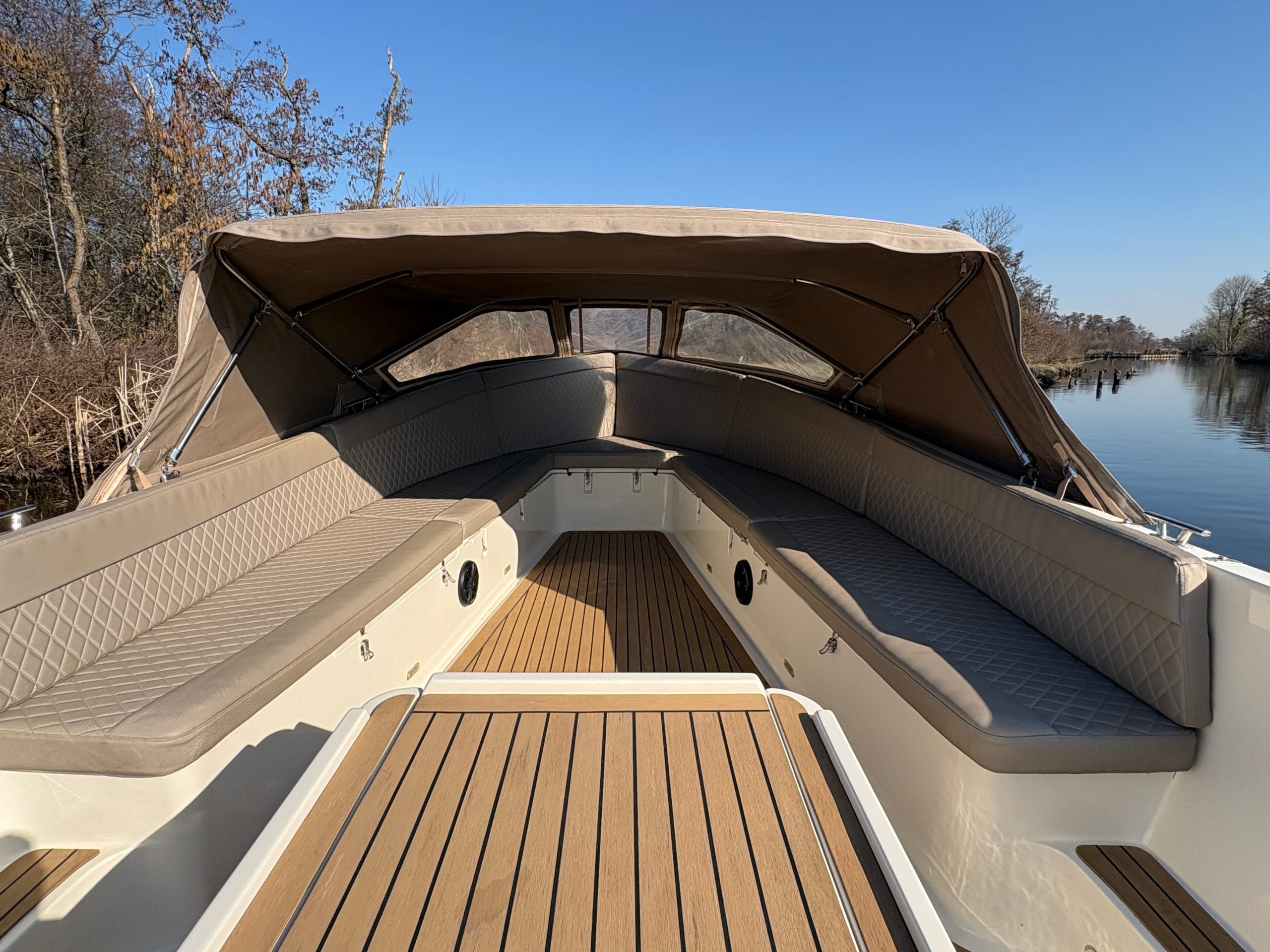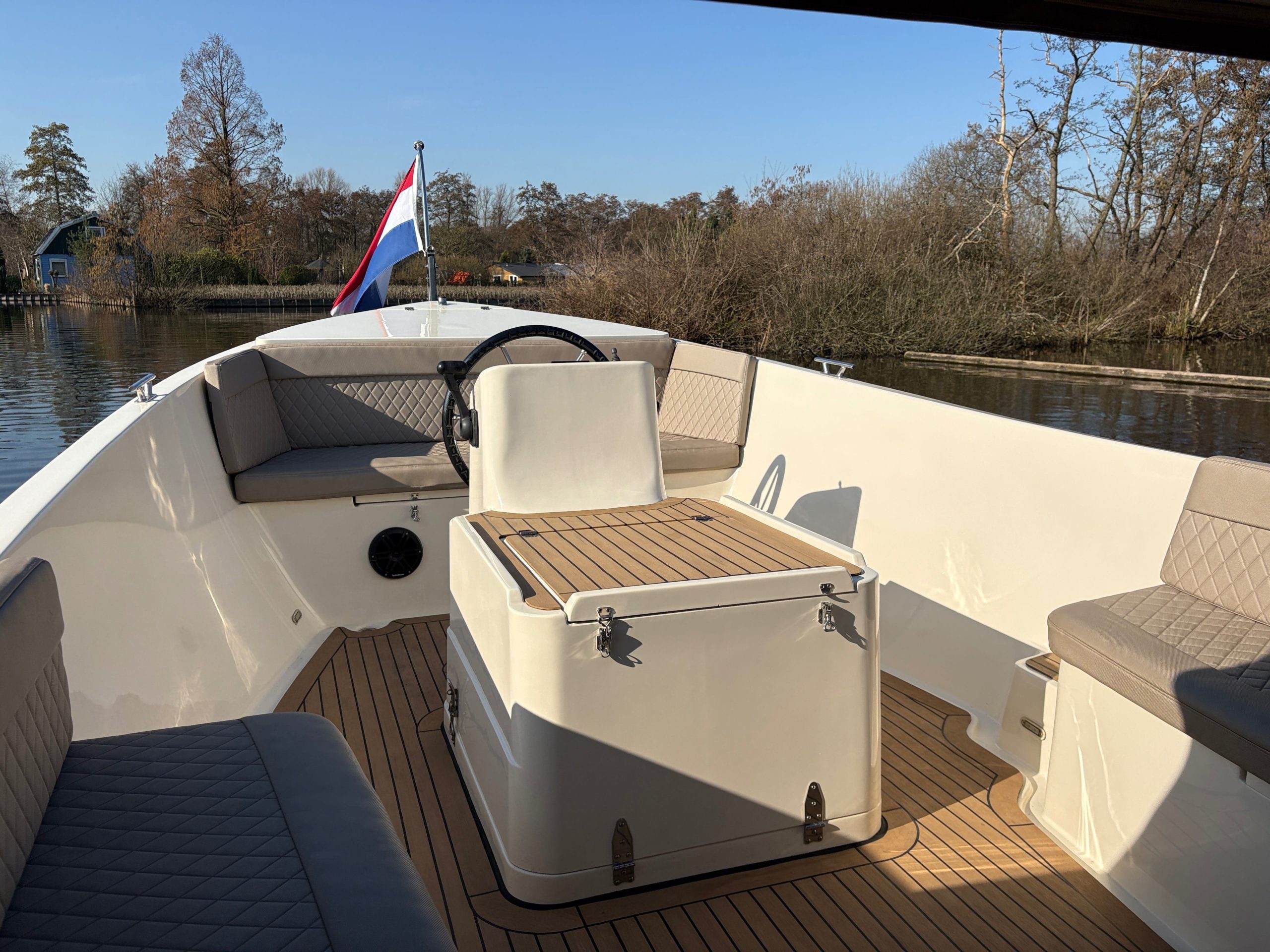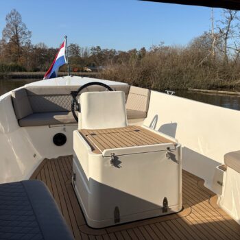 Aan boord is de boot voorzien van comfortabele kussens, sfeervolle ledverlichting en een nette, verzorgde afwerking. Daarnaast beschikt de Pieterman 750 over een Rockford speaker, zodat je onderweg ook kunt genieten van muziek en extra sfeer aan boord.